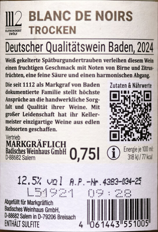 Markgräflich Badisches Weinhaus, Blanc de Noirs trocken 2024