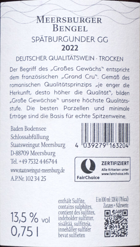 Sehr wertig kommt er daher: schwere Flasche mit eingeprägtem Wappen, mehr Gold auf dem Etikett, aber ein Schraubverschluss! Das geht also inzwischen auch in dieser Liga. Sehr würzig, Kräuter und Pfeffer, komplex aber schlank, im Stil anders als der andere Bengel mehr deutsch als Burgunder. Schade! Zweifellos ein sehr guter Wein, aber damit gefällt er mir nicht so. Beim Hersteller 34,90 €