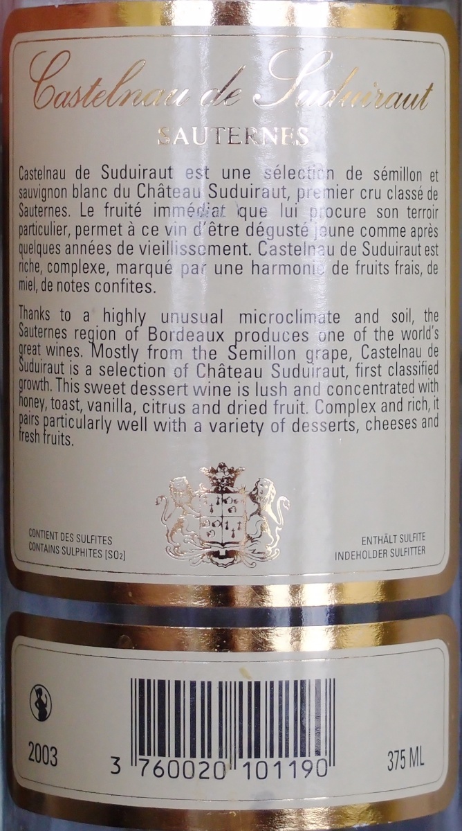 Ein Sauternes von Lindenberg, nicht schlecht, aber auch nicht begeisternd. Preis zwischen 10 und 20 € für die halbe Flasche.