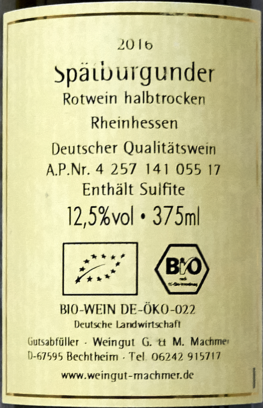 Die Überraschung! Deutliche Restsüße sehr gut eingebaut, rund, harmonisch, aber gar nicht langweilig. Der schmeckt mir selbst richtig gut. Ein ganz starker Kandidat für die Position Massengeschmack. Dreingabe bei Machmer.