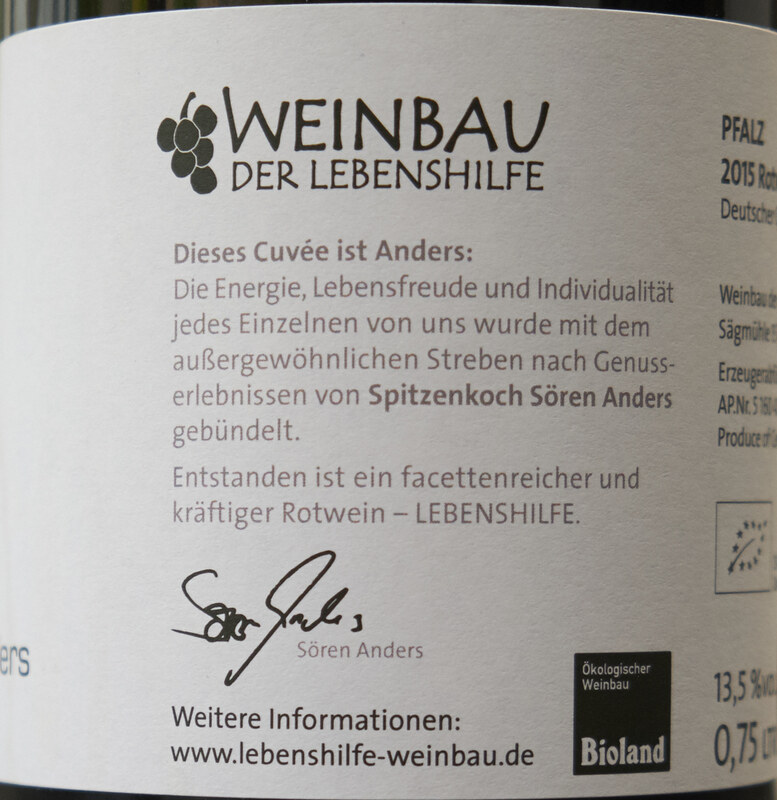 Lebenshilfe Bad Dürkheim, Lebenshilfe mal anders, Rotwein trocken 2015