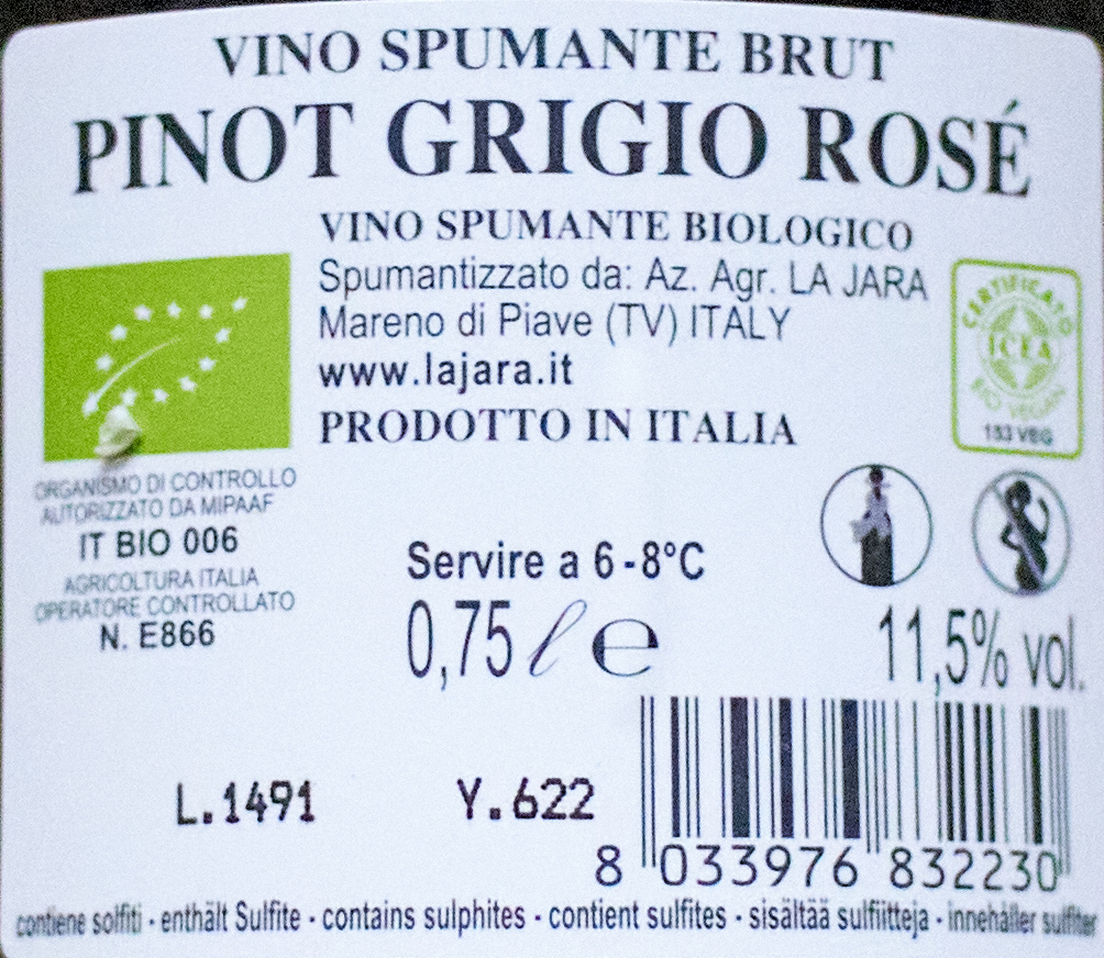 Offensichtlich kann man aus einen Pinot Grigio einen Rosé machen — wusste ich noch nicht. War schon ein antändiger Schaumwein, hatte aber nicht diese frische schaumige Leichtigkeit, die ich suchte. Ansonsten gut, aber auch nicht zum Niederknien. LPG bei 13 €