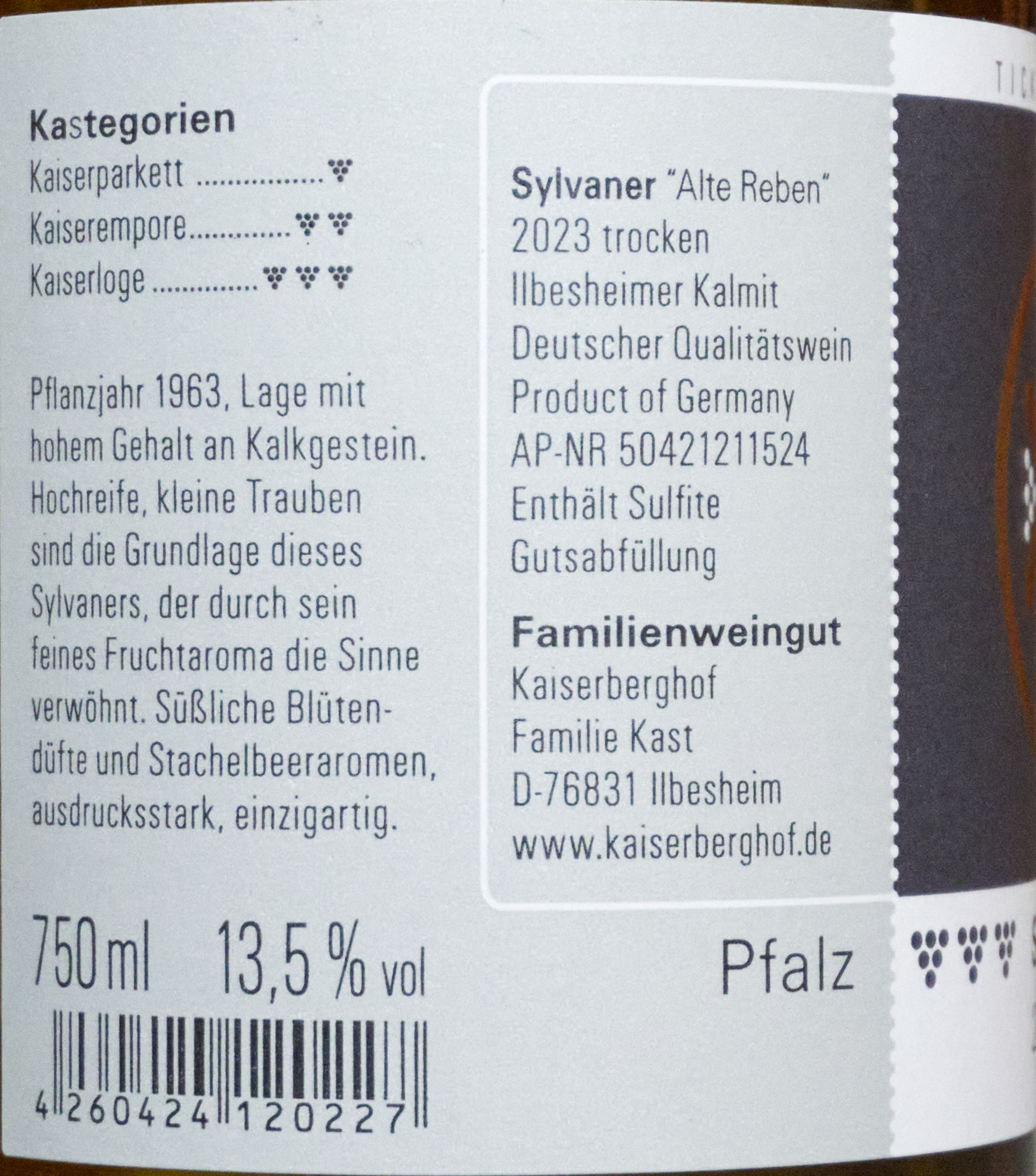 Kast Kaiserberghof, Ilbesheimer Kalmit, Sylvaner Alte Reben trocken 2023